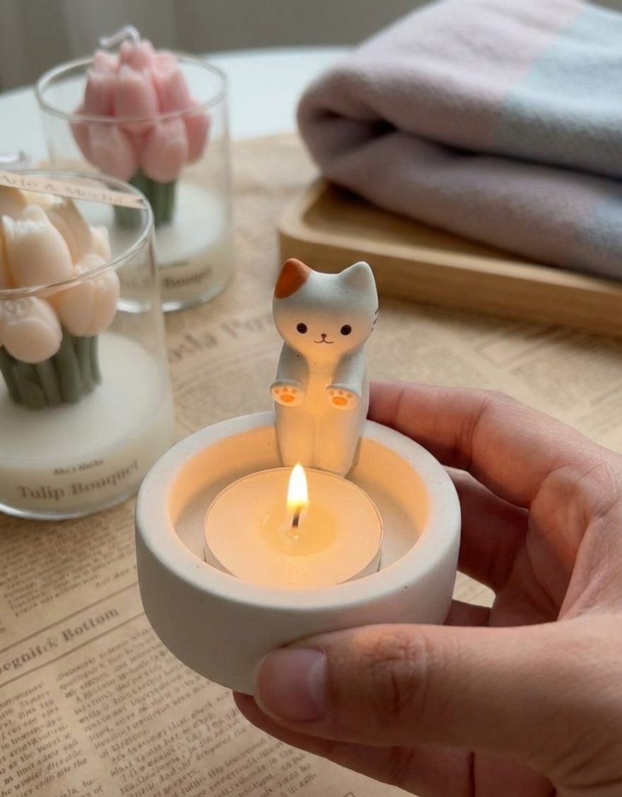 Adds an instant cozy vibe to your desk, bedside table, or reading nook, with the cat “warming its paws” over the candle.